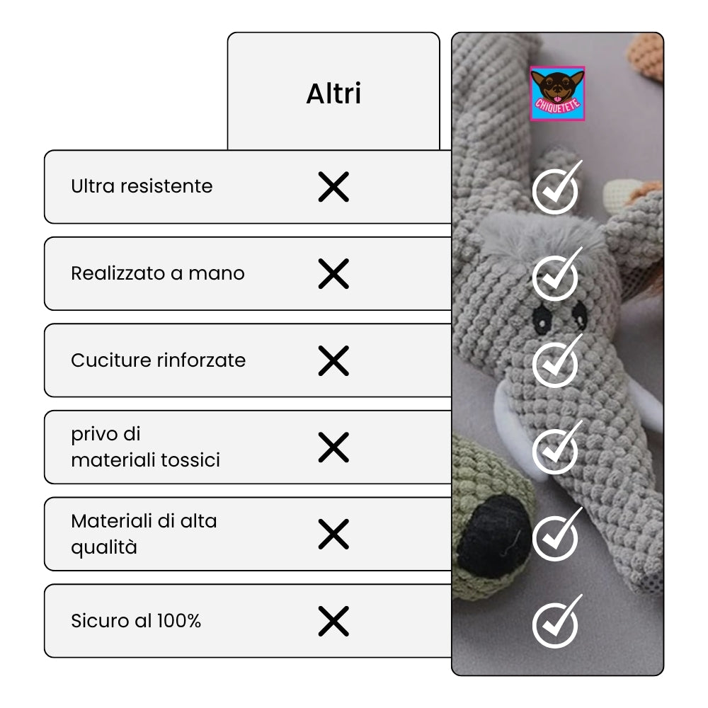 Il Pupazzo Indistruttibile Chiquetete è realizzato con materiali premium selezionati per garantire durata e resistenza anche ai morsi più forti.